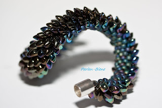 Das Armband ist mir schon auf mehreren Blogs begegnet und da die Perlchen schon länger bei mir rumlagen, hab ich sie endlich mal verarbeiten können. Das Teil geht recht schnell zu fädeln und macht echt Laune.
